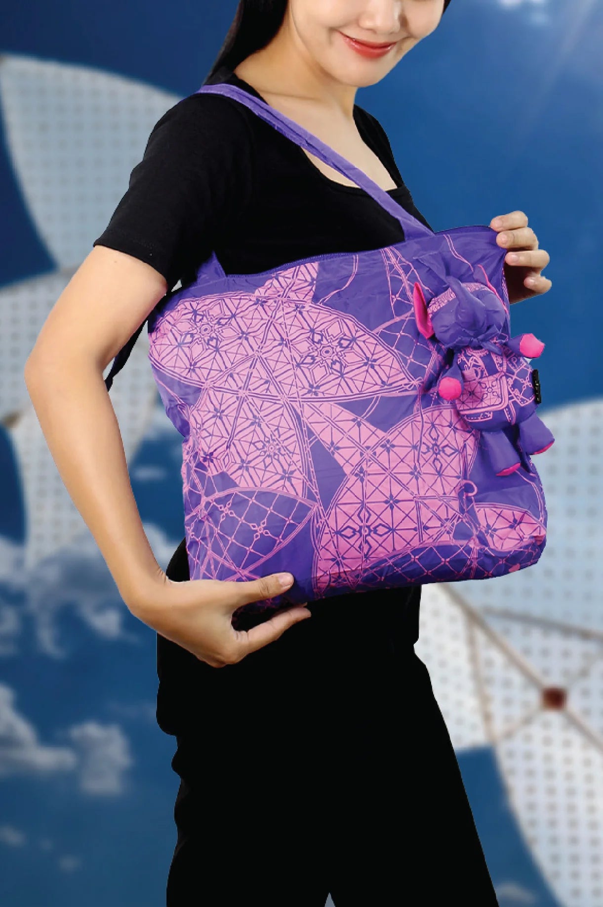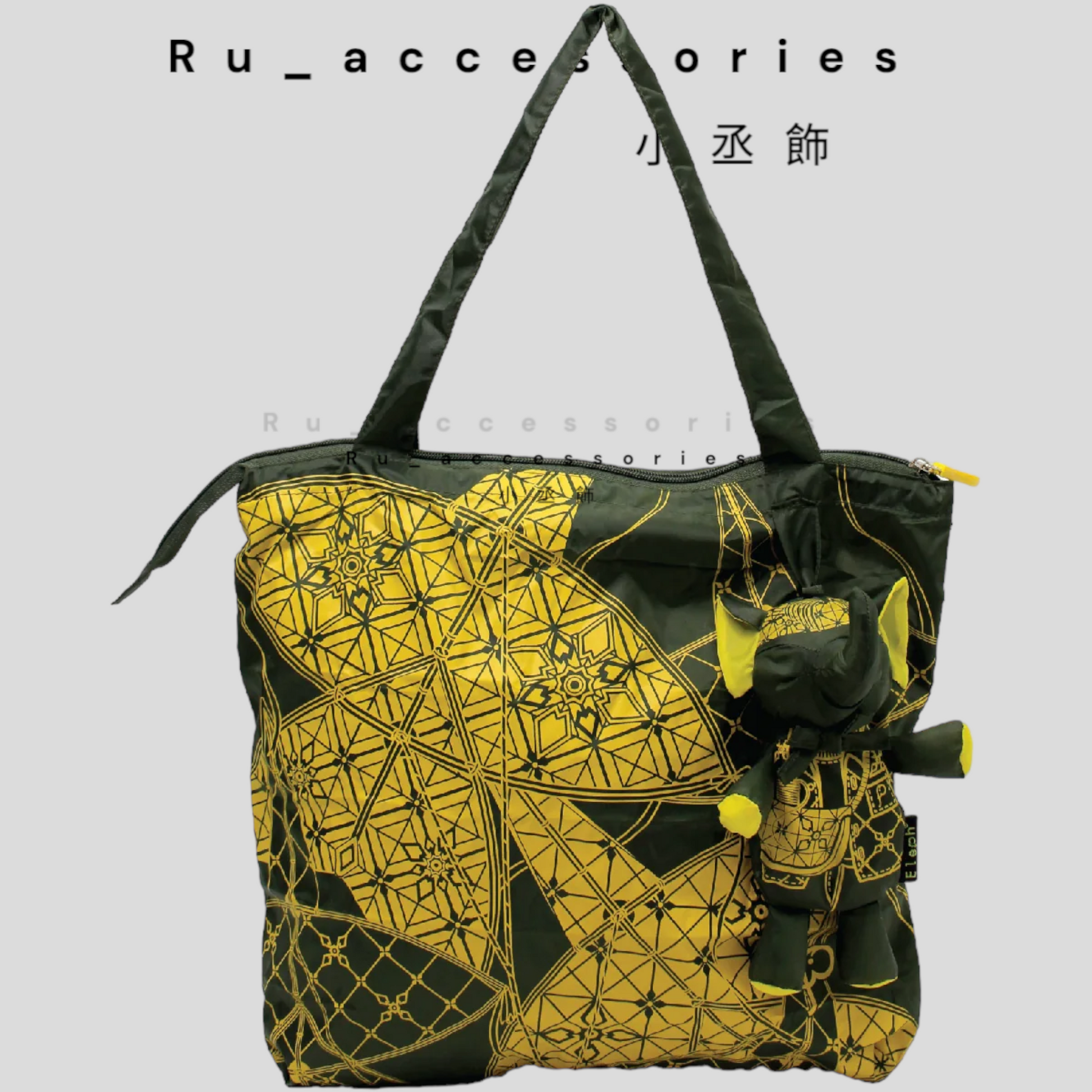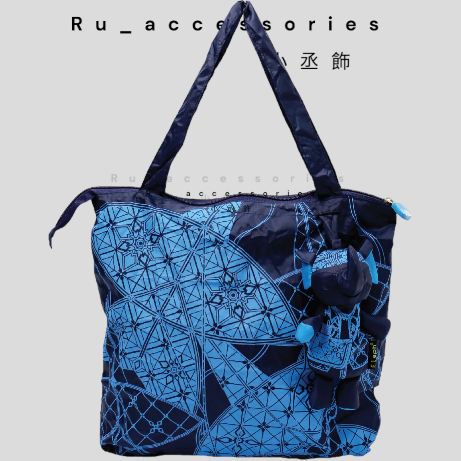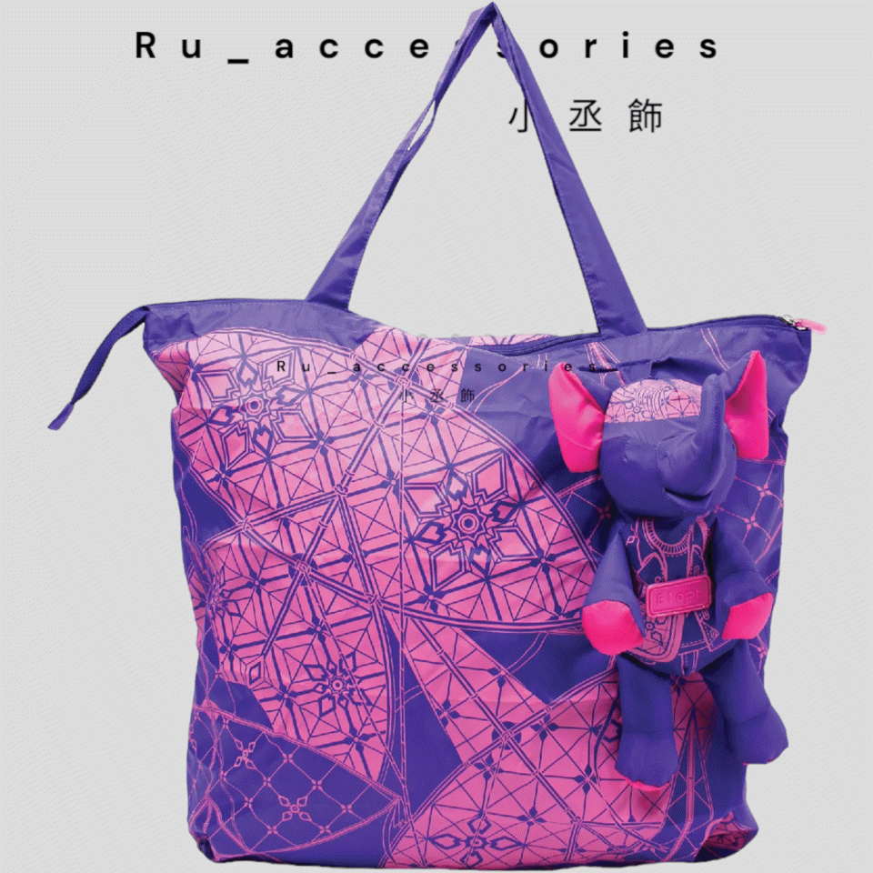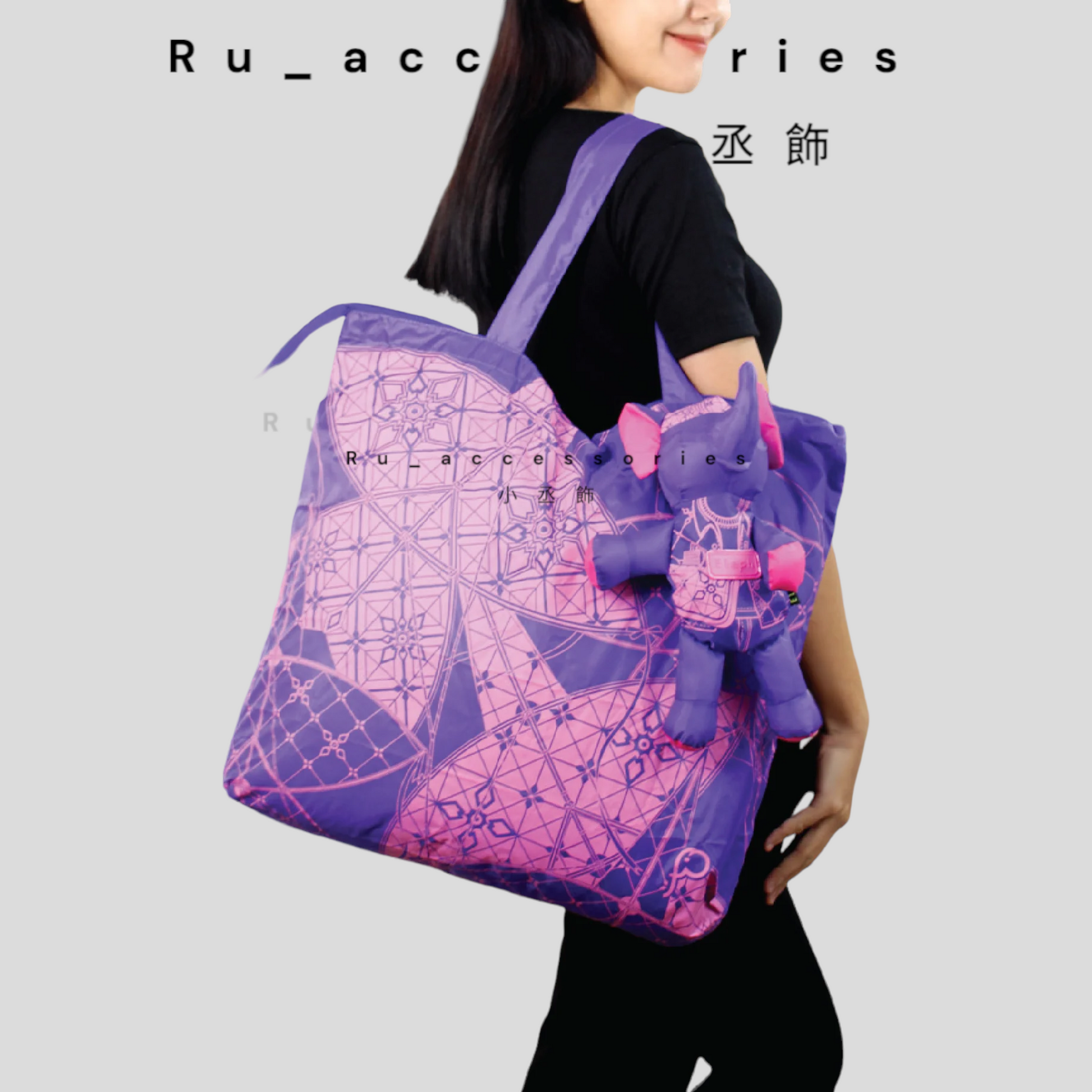 這個包包設計成易於摺疊並存放在大象玩偶內。
