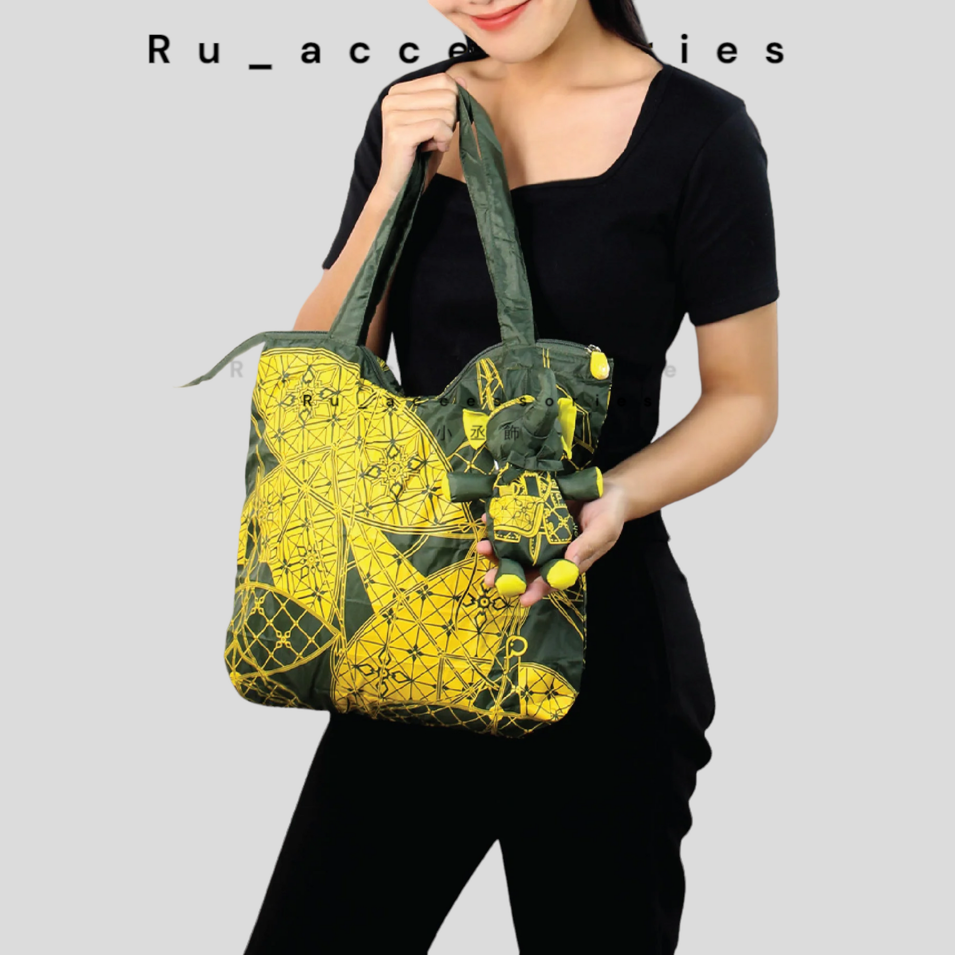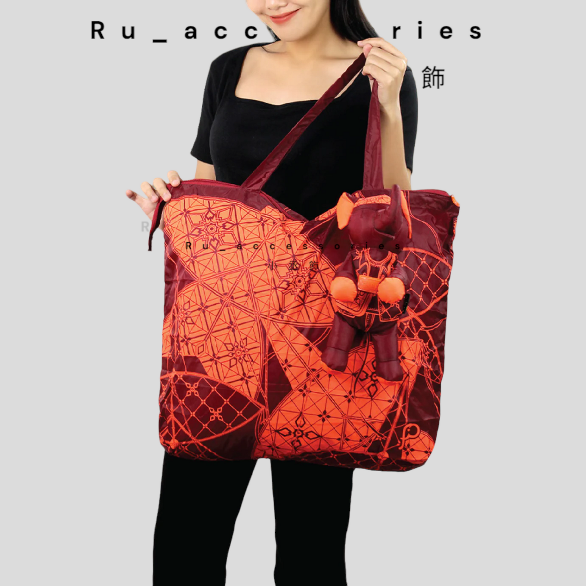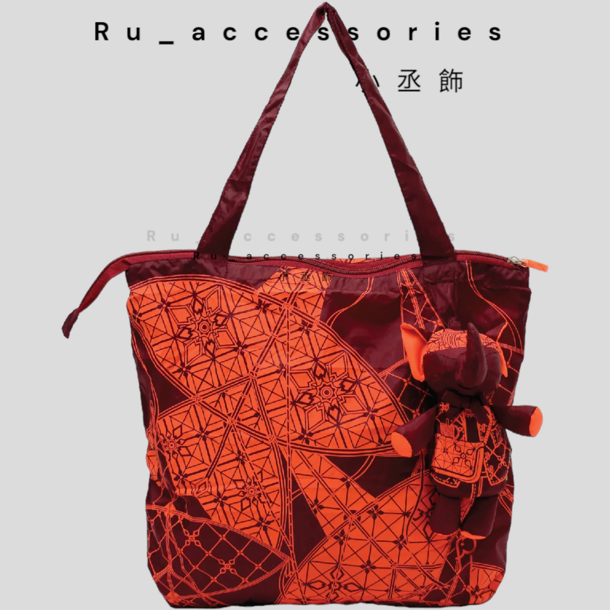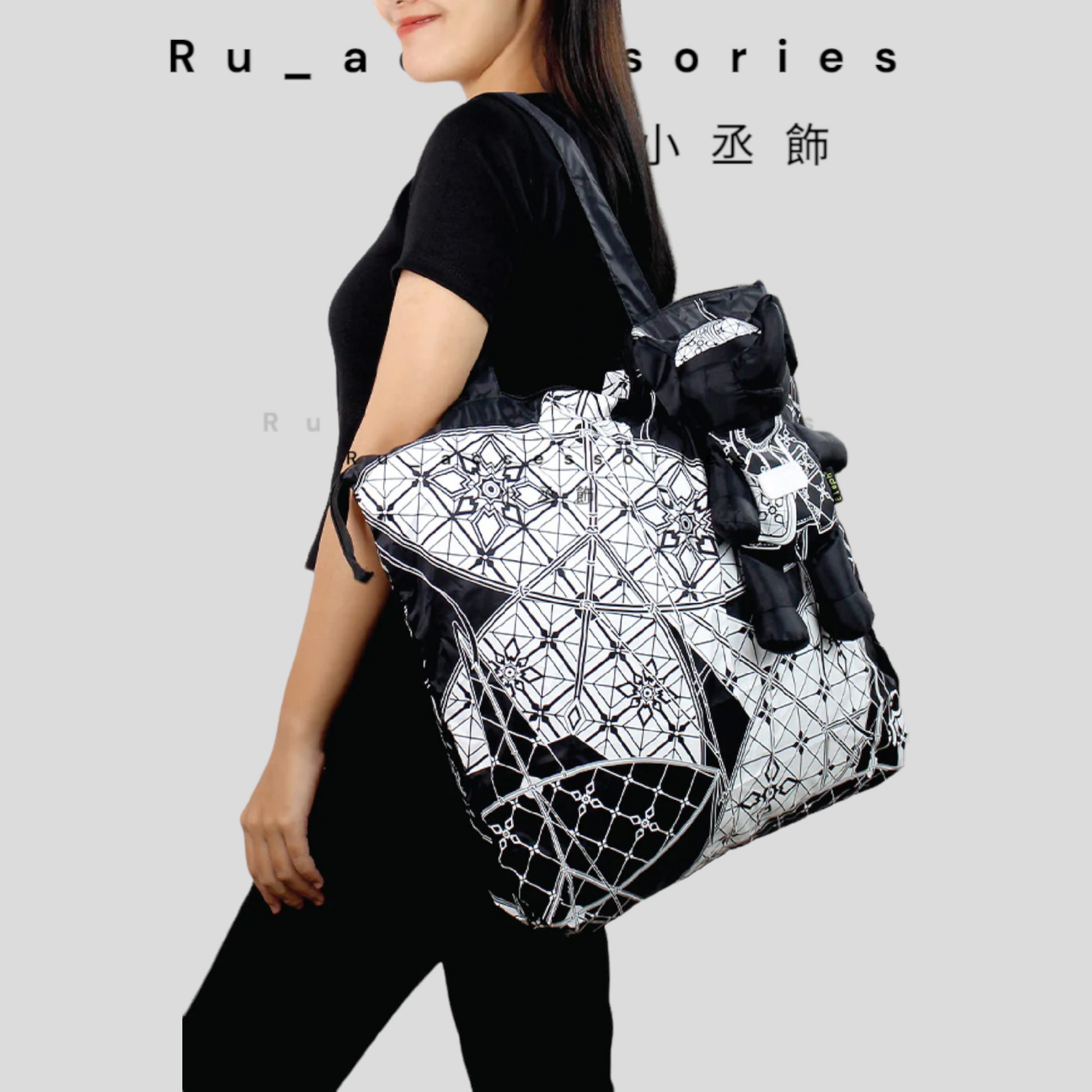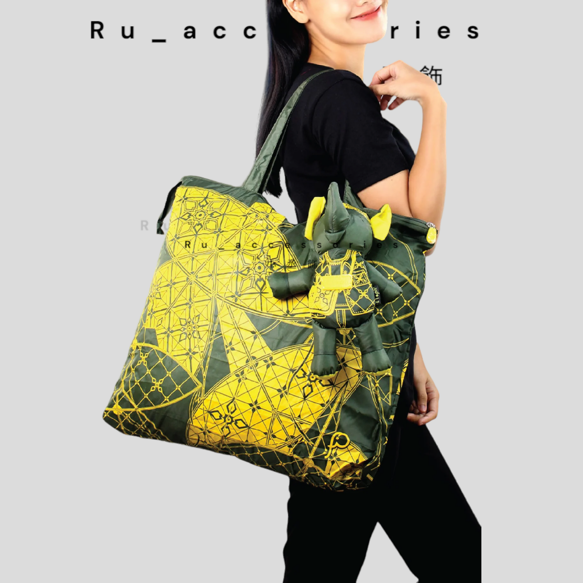 這個包包設計成易於摺疊並存放在大象玩偶內。