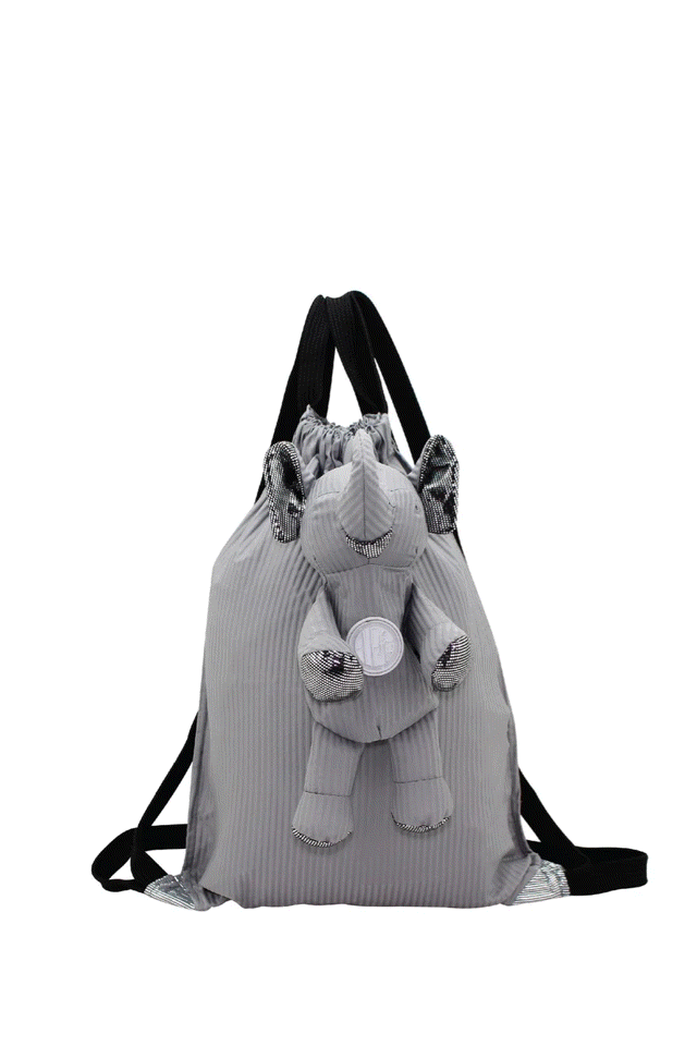 袋子可以輕鬆地摺疊起來並收納在一個獨特的大象娃娃中。