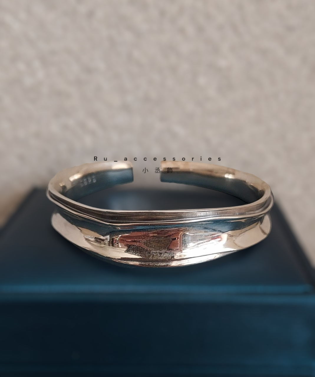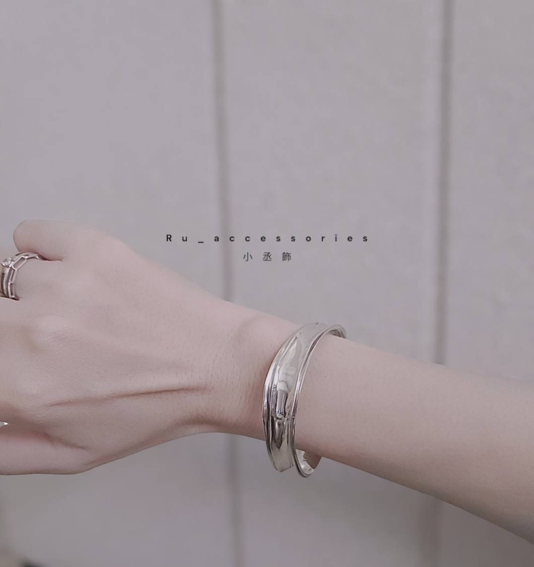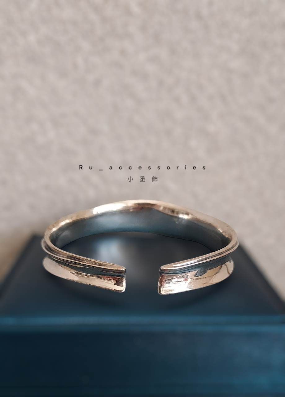 S925 寬厚版微凹波浪不規則手鐲超個個性款必備 #16