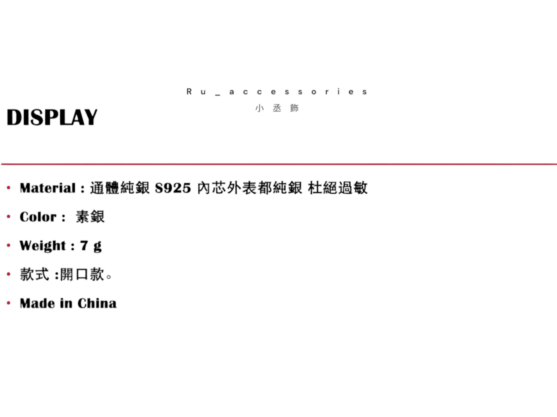 •Material : 通體純銀 S925 內芯外表都純銀 杜絕過敏