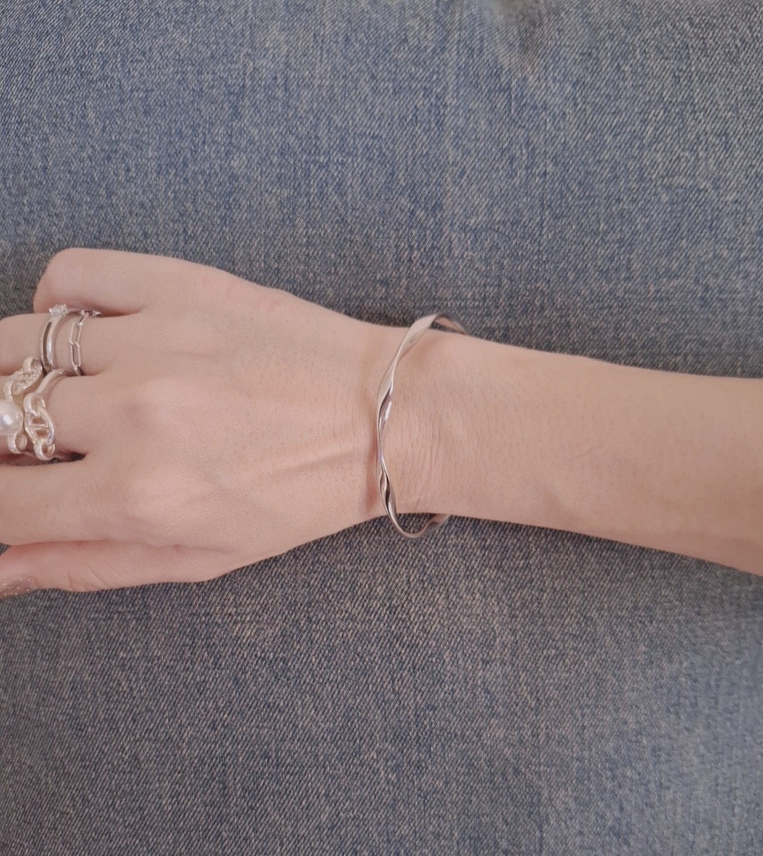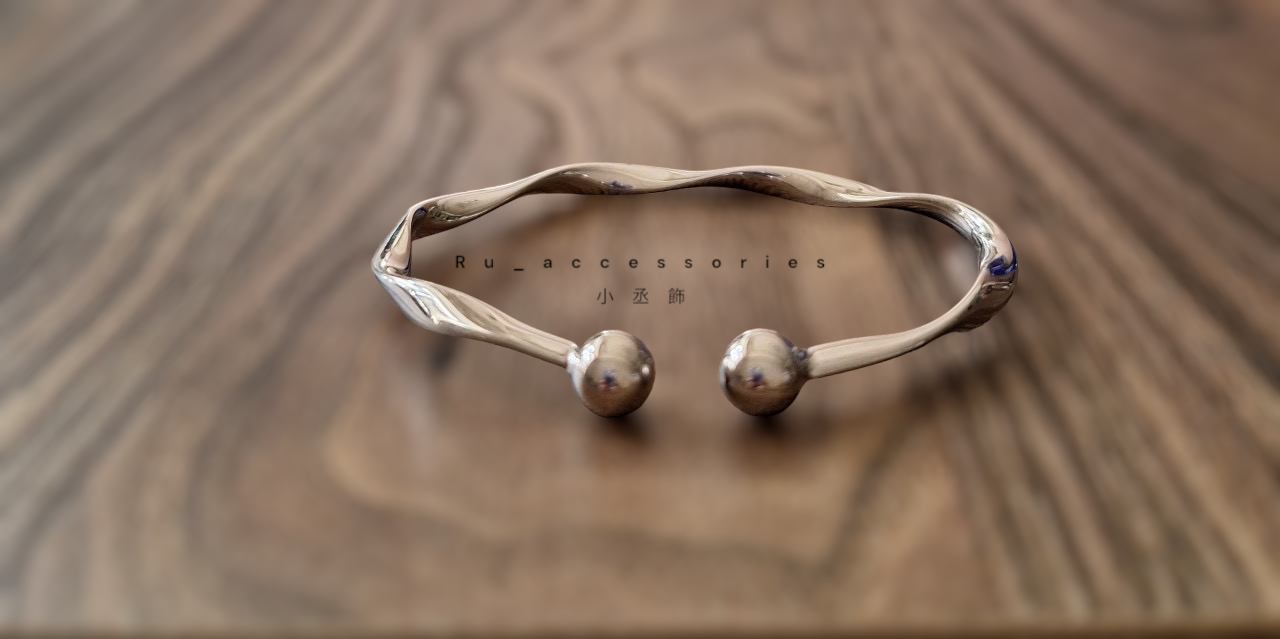 S925 莫比烏絲扭紋圓珠開口鐲 #27