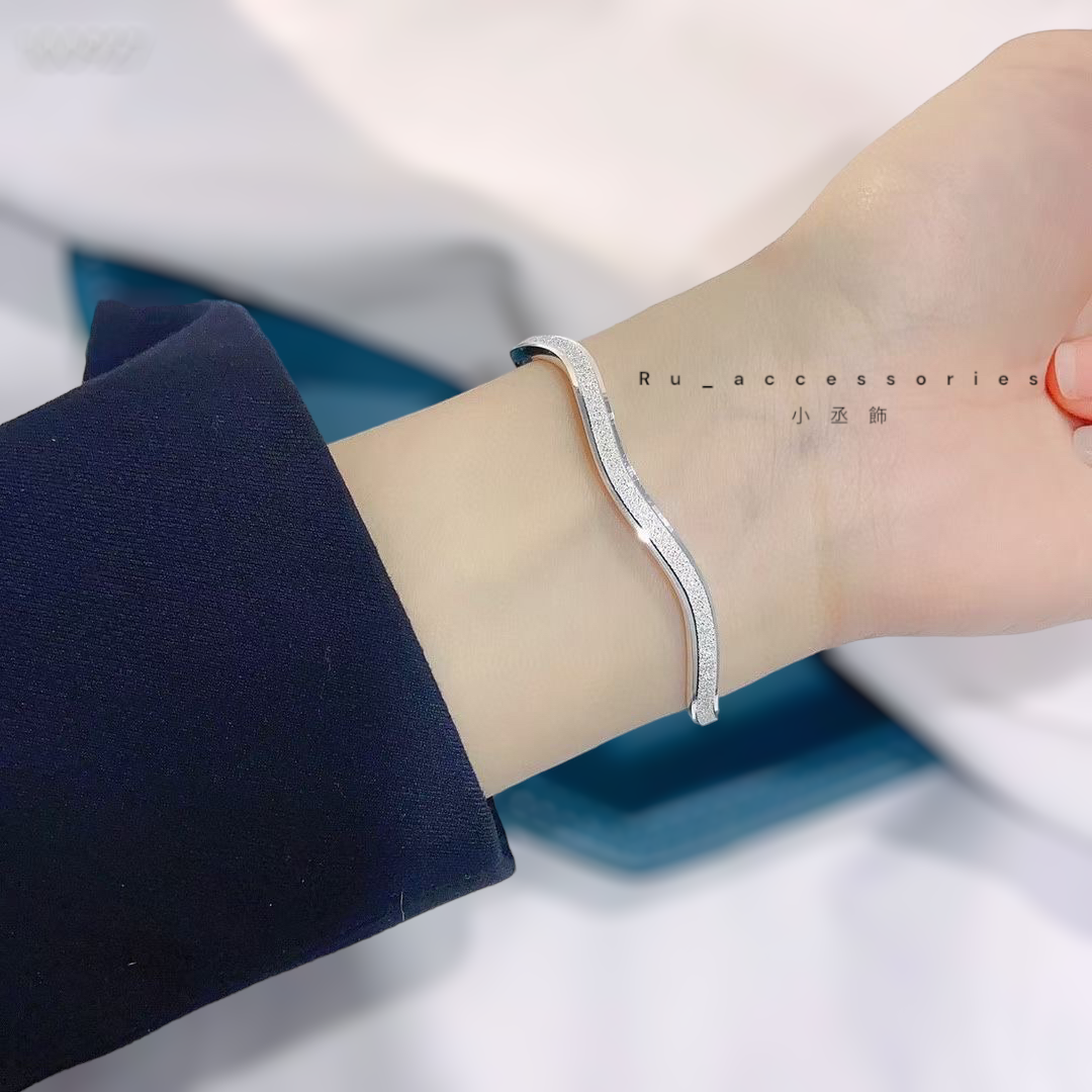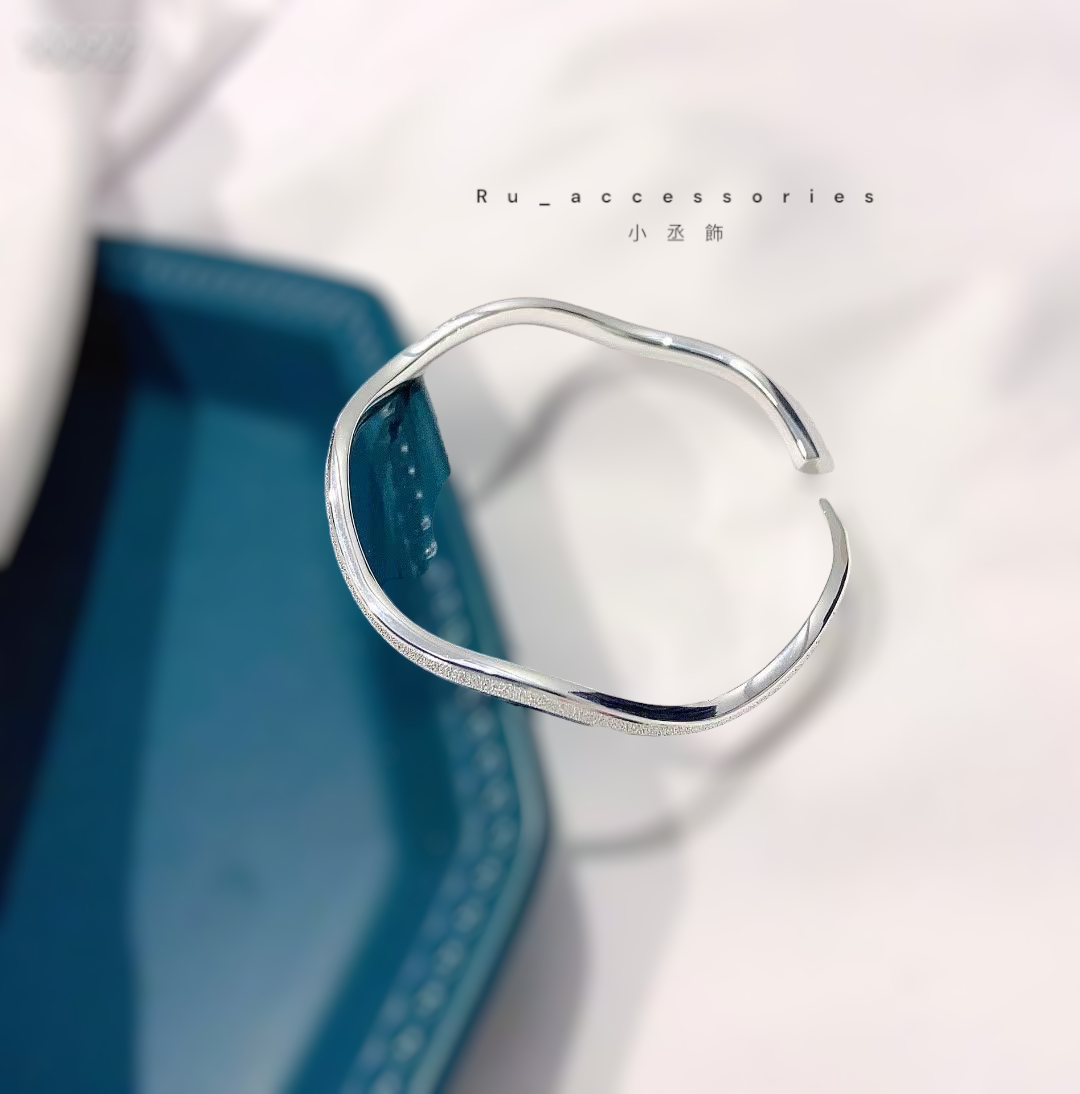 S999 波浪噴砂高質感銀鐲#21