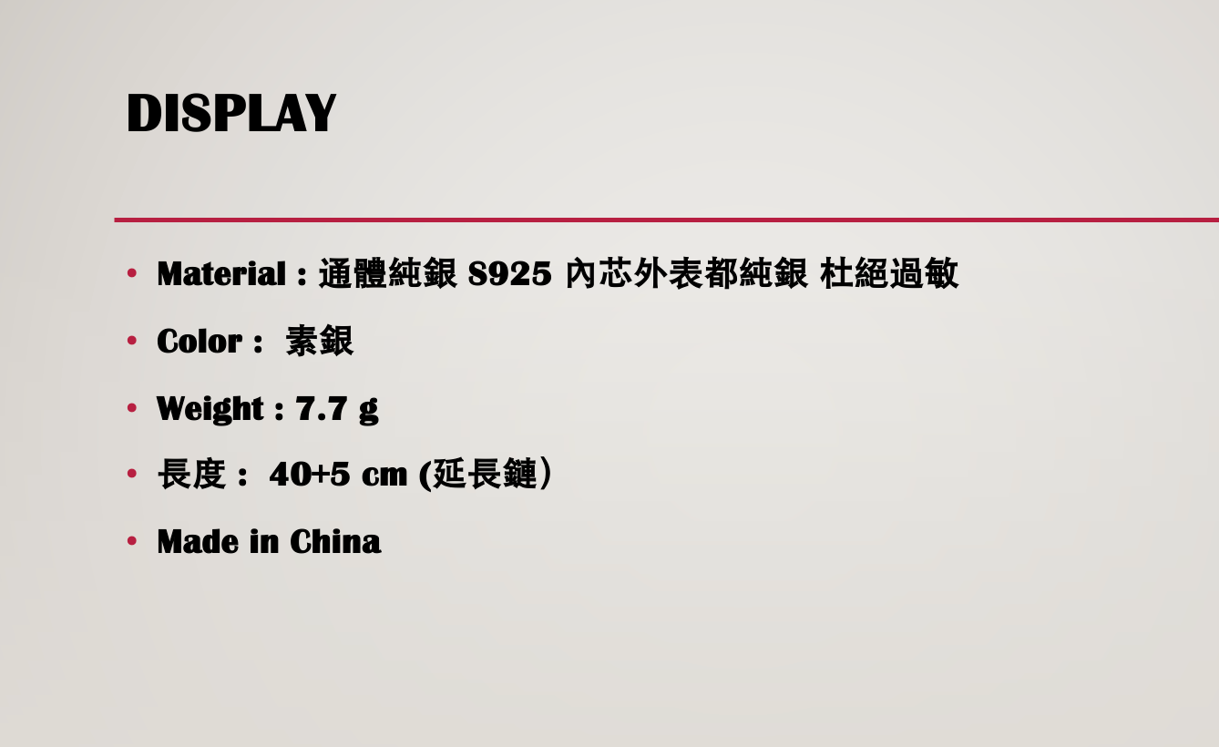 •Material : 通體純銀 S925 內芯外表都純銀 杜絕過敏